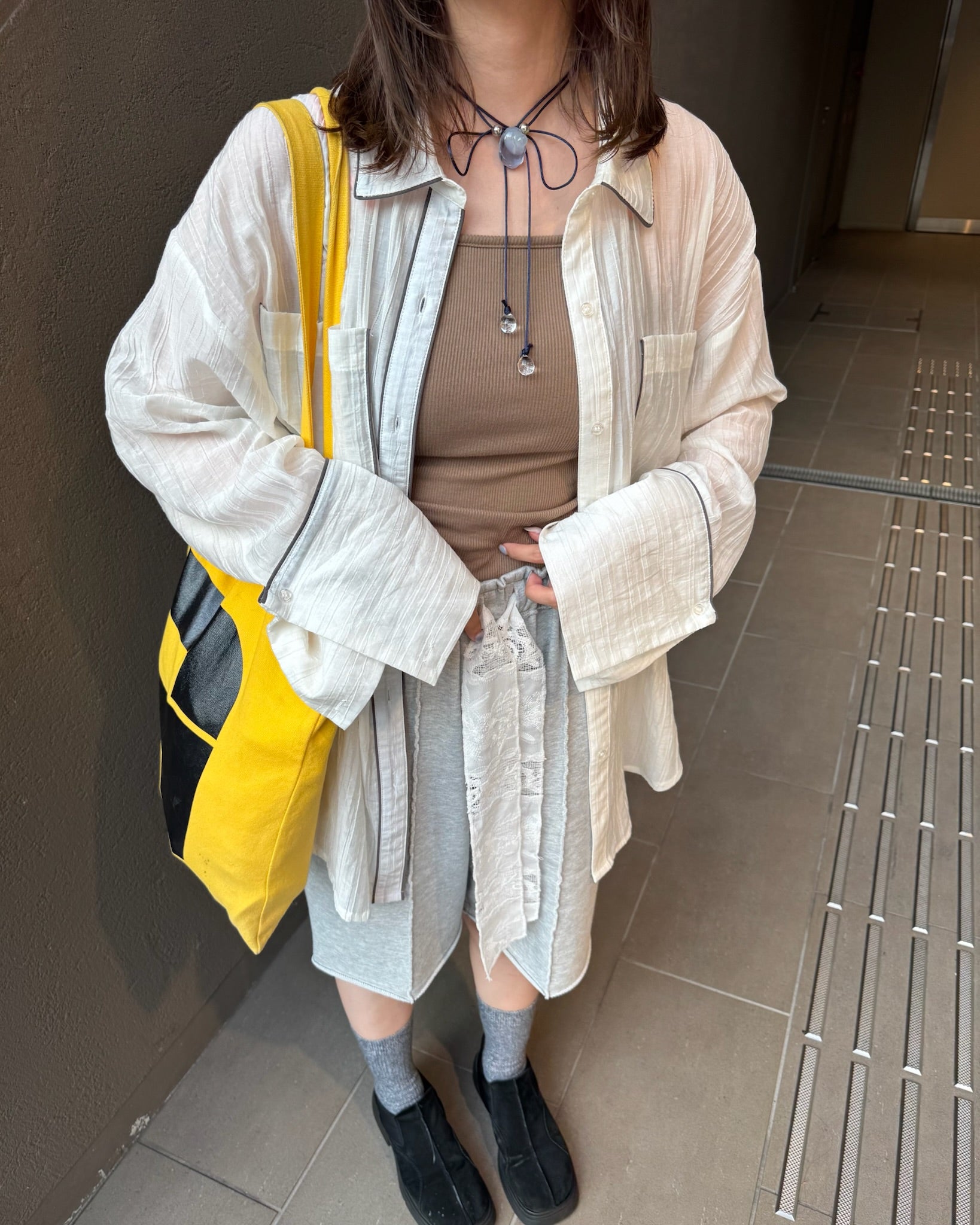ナチュラルかつ遊び心のある夏のシャツスタイル。