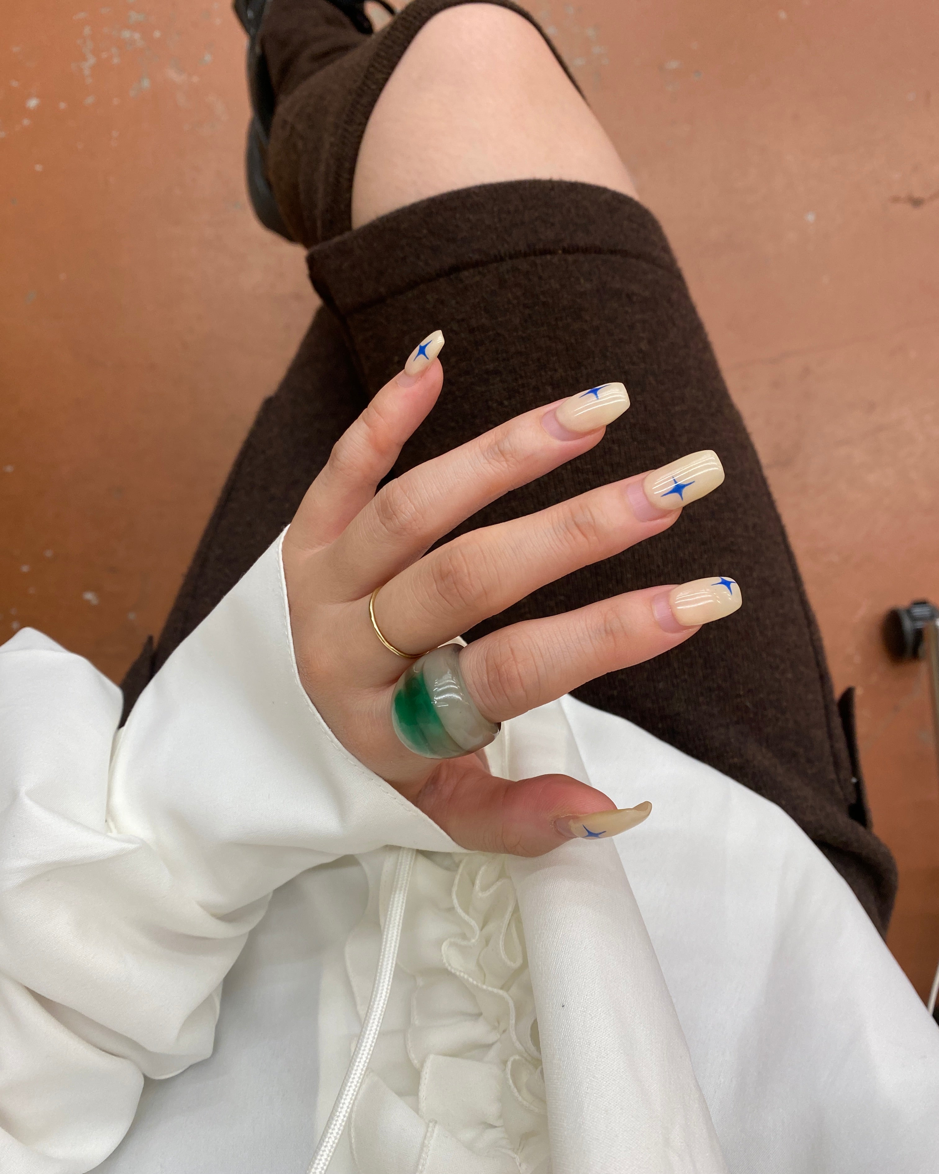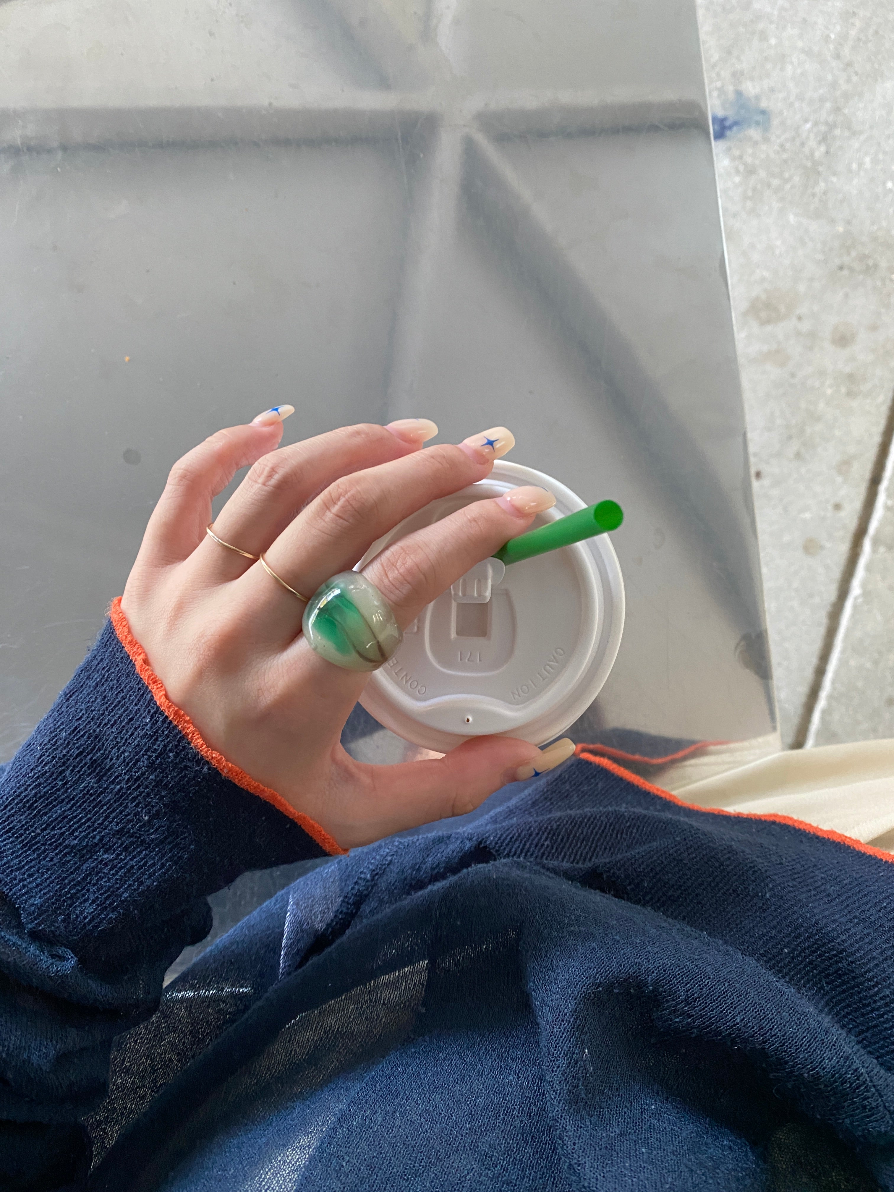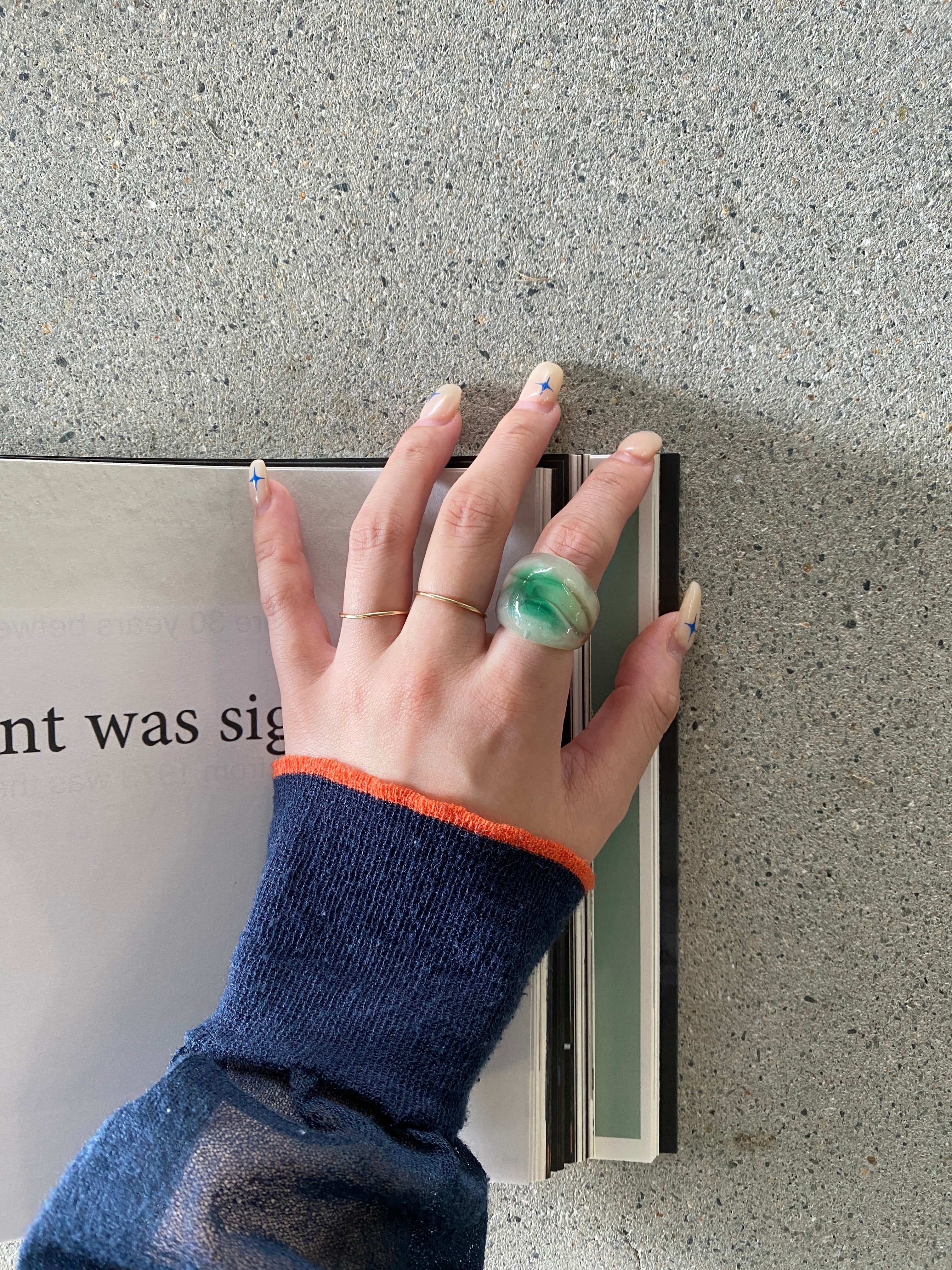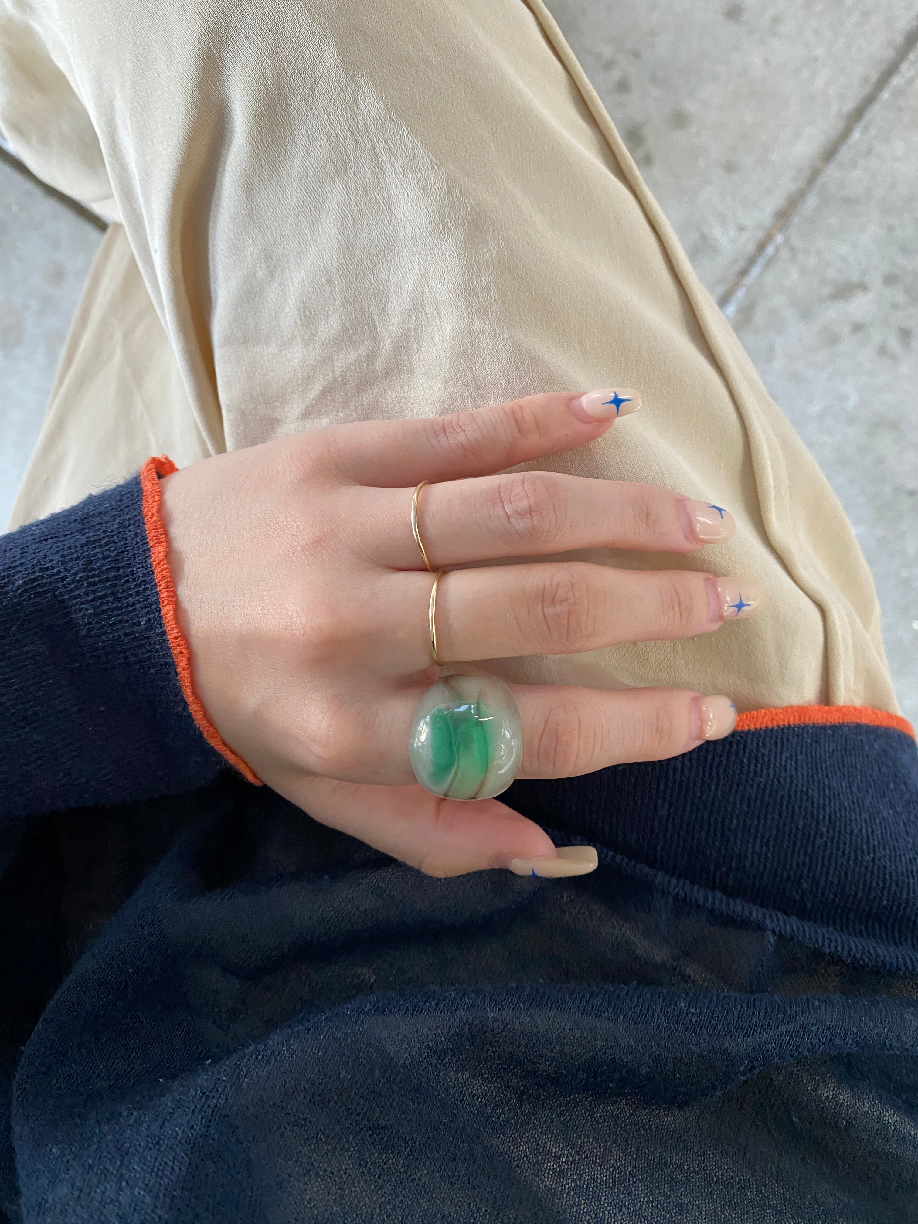 シンプルで手元に馴染みやすいカラーでありながらも程よい個性が光るリング。 オールシーズン合わせやすいデザインです。