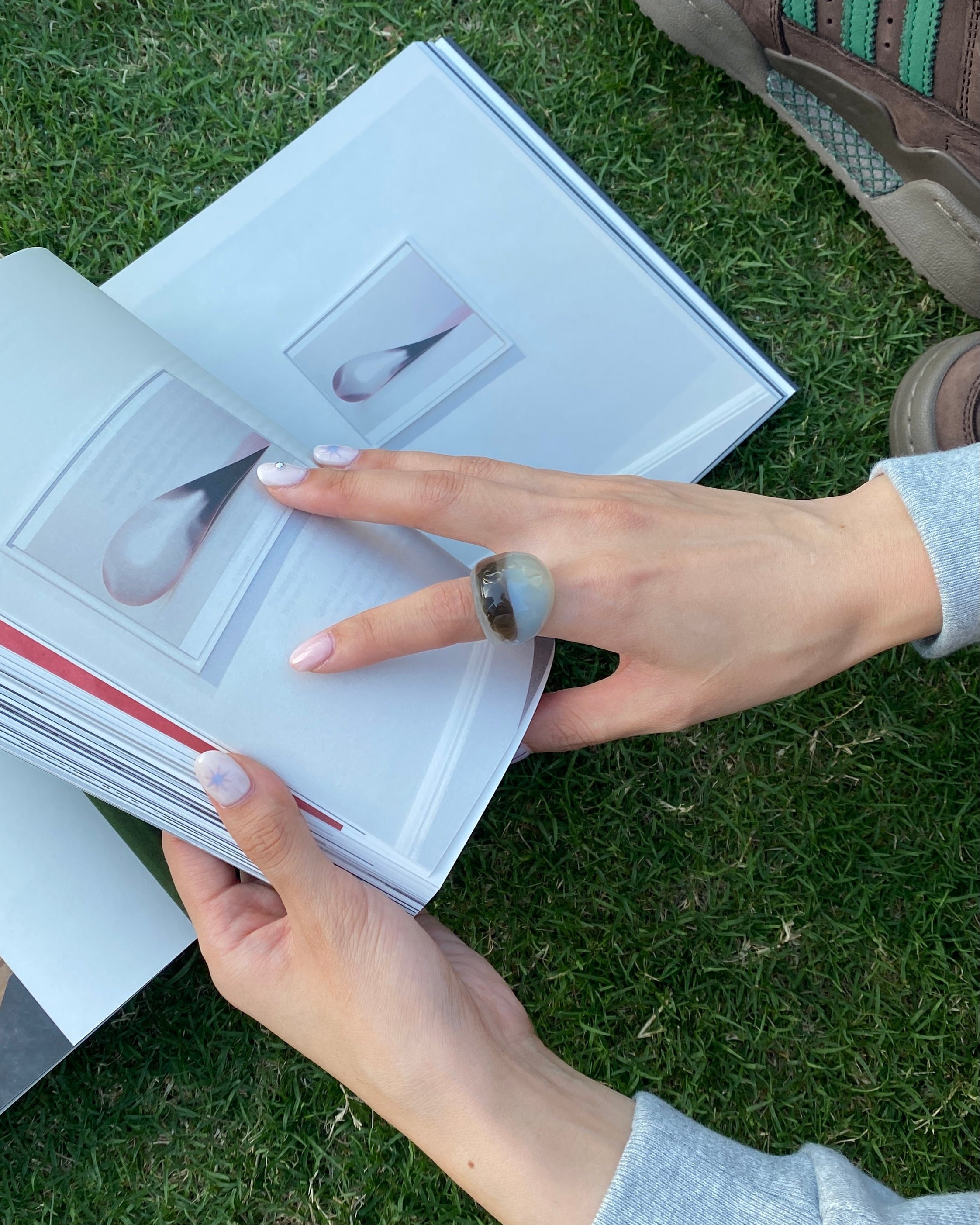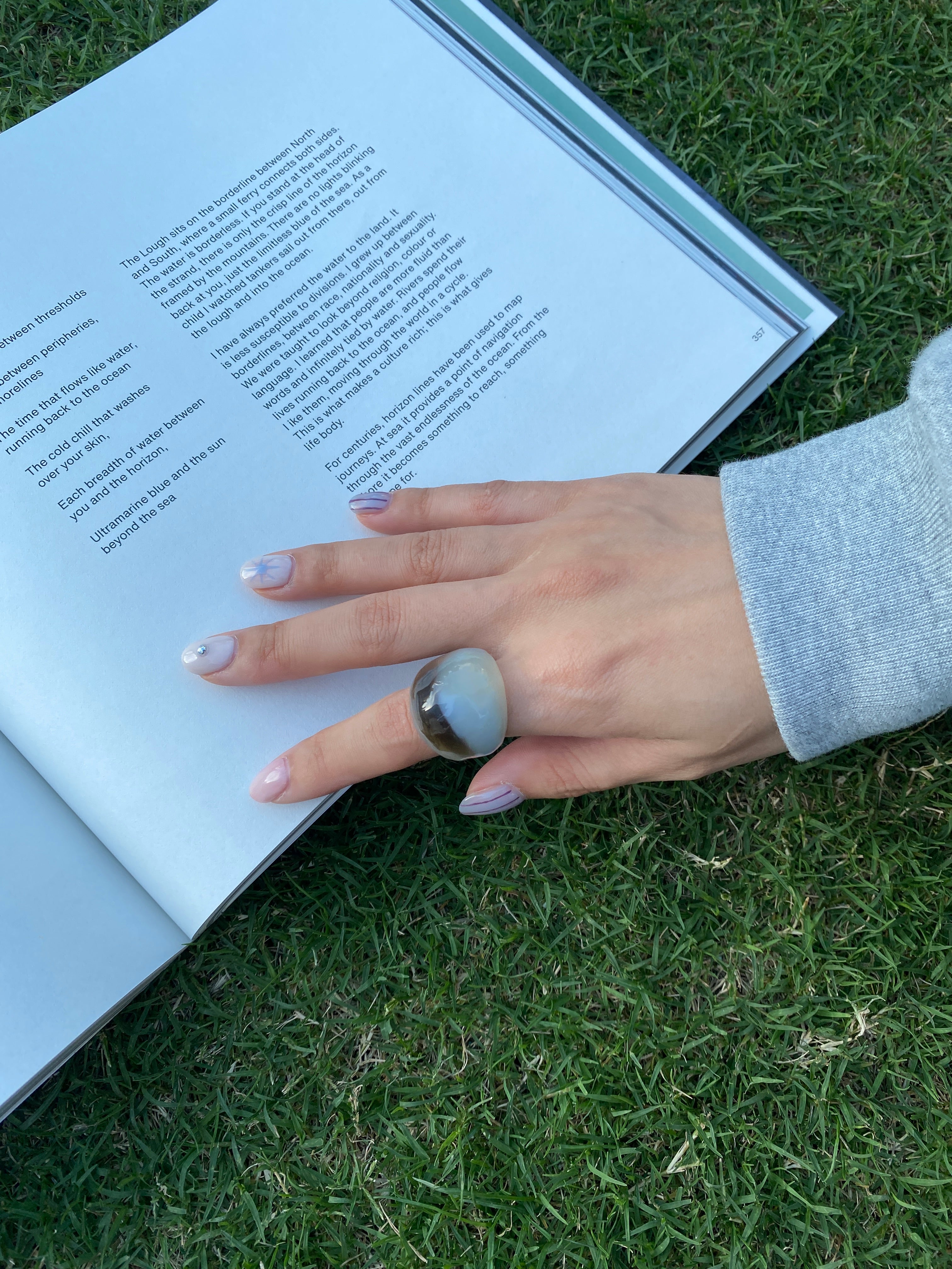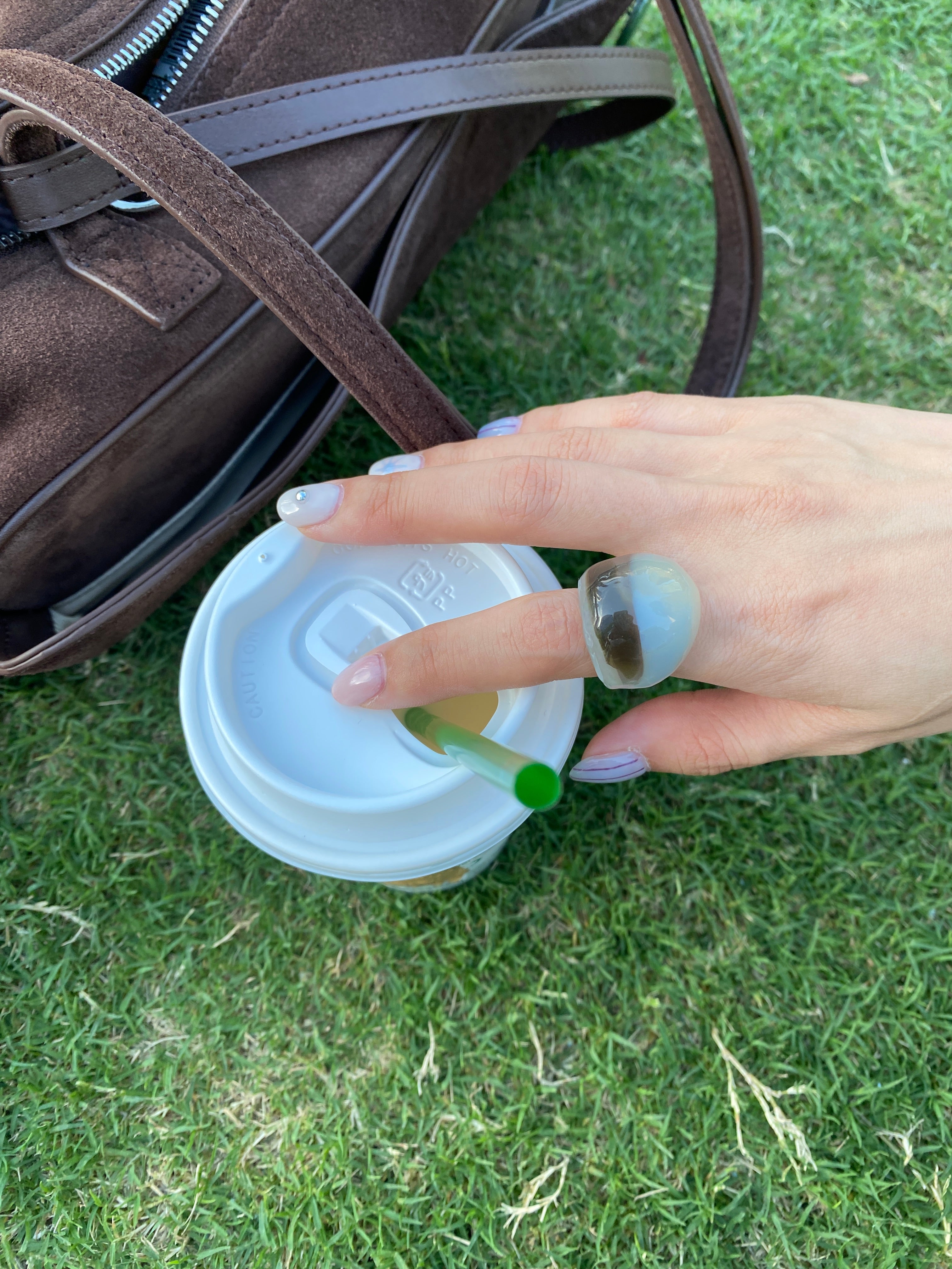 ぷっくりとしたシルエットで存在感のあるリング。 グリーンがアクセントとなり映える手元に◎